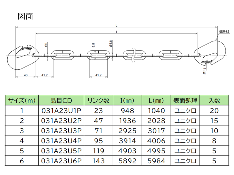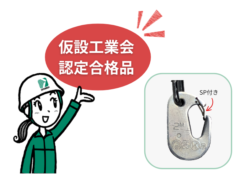 従来の汎用型足場吊りチェーンに外れ止め(SP)が付いて、