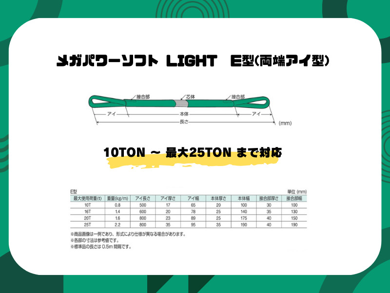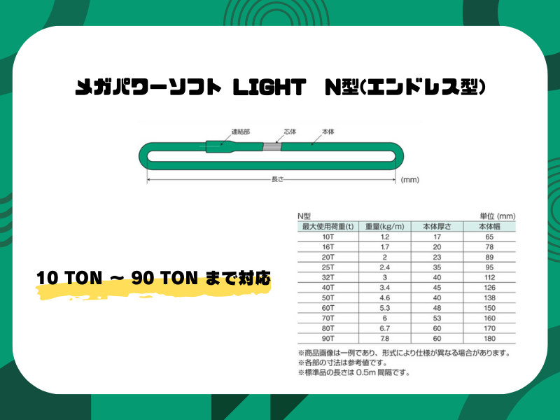 ・従来のポリエステル製JISラウンドスリングの55%以下に 軽量化